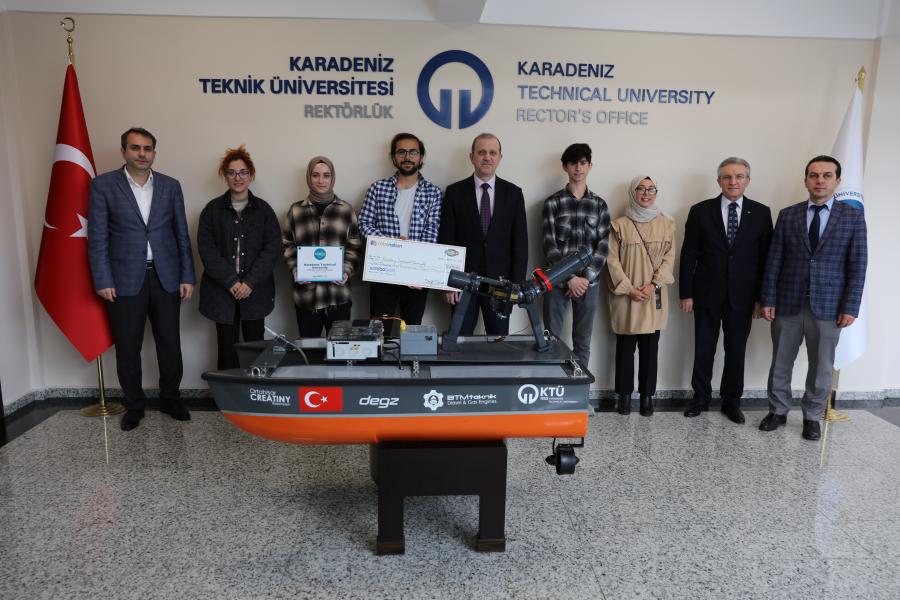 Rektörümüz Prof. Dr. Hamdullah ÇUVALCI ve yönetim ekibi, Amerika Birleşik Devletleri’nin Florida Eyaleti’nde düzenlenen 13. RoboBoat 2023 Elektrilkli Otonom Su Üstü Araç Yarışması'na katılarak dünya ikinciliğini elde eden KTÜ-Ortahisar Creatiny Su Üstü Takımı üyelerini Rektörlük Toplantı Salonu’nda ağırlayarak tebrik etti.
