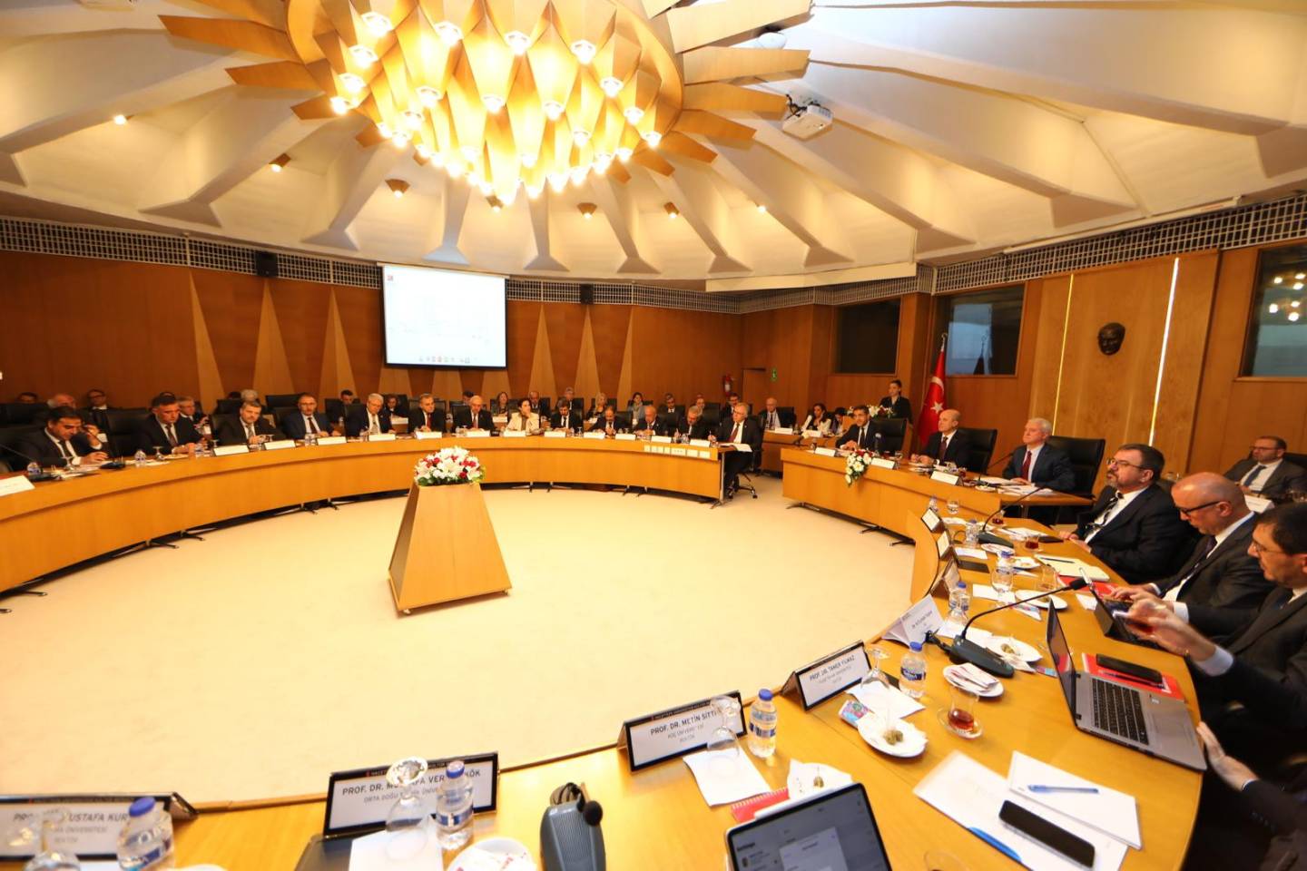 Yükseköğretim Kurulu Başkanı Prof. Dr. Erol ÖZVAR toplantıda yaptığı konuşmada, Yükseköğretim Kurulu’nun 2021 yılında belirlediği yeni vizyonuyla devam eden Araştırma Odaklı Misyon Farklılaşması ve İhtisaslaşma Programı’nın 23 üniversite ile birlikte başarıyla yürütüldüğünü belirtti. Araştırma Üniversitesi olan yükseköğretim kurumları arasında yaşanan tatlı rekabetin, Uluslararası Üniversite Derecelendirme Kuruluşu birçok mecra tarafından her yıl yayınlanan dünya üniversiteleri sıralamalarına ve özellikle son iki yıla olumlu bir biçimde yansıdığını ifade eden YÖK Başkanı Prof. Dr. ÖZVAR “12. Kalkınma Planı’nda yer alan yükseköğretimle ilgili hedeflerimizden birisi de Dünya Akademik Başarı Sıralaması listelerinde ilk 500’de yer alan üniversite sayımızı, 2028 yılında 10’a çıkarmaktır. Ben inanıyorum ki Araştırma Üniversitelerimizin tamamı, fiziksel altyapıları ve sahip oldukları akademik insan kaynağı ile önümüzdeki 5 yılda, ilk 500 içerisinde yer alma potansiyeline sahiptir. Son yıllarda artan uluslararası öğrenci hareketliliğinde bu tür sıralamaların ve değerlendirmelerin fevkalade önemli olduğunu görüyoruz.” dedi.
