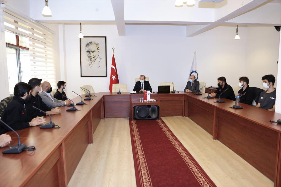 Akademik Danışmanları Prof. Dr. Yasin ALEMDAĞ başkanlığında bir araya gelen KTÜ Enerji Teknolojileri Topluluğu öğrencileri; Takım Kaptanı Oğuzhan ÇAKMAK, Takım Kaptan Yardımcısı Orhun Can UZUN, Mekanik Birimi Sorumlusu Nafız ÖNEL, Tasarım Birimi Sorumlusu Nuri YILDIZ, Malzeme Birimi Sorumlusu Mert ÇETİN, Elektrik Birimi Sorumlusu Beyza Gül ŞİMŞEK, Medya ve Sponsorluk Birimi Sorumlusu Nihat KOCAMAN, Takım Üyesi; Yunus Emre ÜZMEZ, Uğurcan BALAMİR, Sugur Berke MİDİLLİ ve Selçuk Kaan SAVAŞKAN, Rektörümüz Prof. Dr. Hamdullah ÇUVALCI tarafından Rektörlük makamında ağırlandı. Ziyarette, geleceğe yönelik çalışmalar hakkında görüş alışverişinde bulunularak hedefler belirlendi.