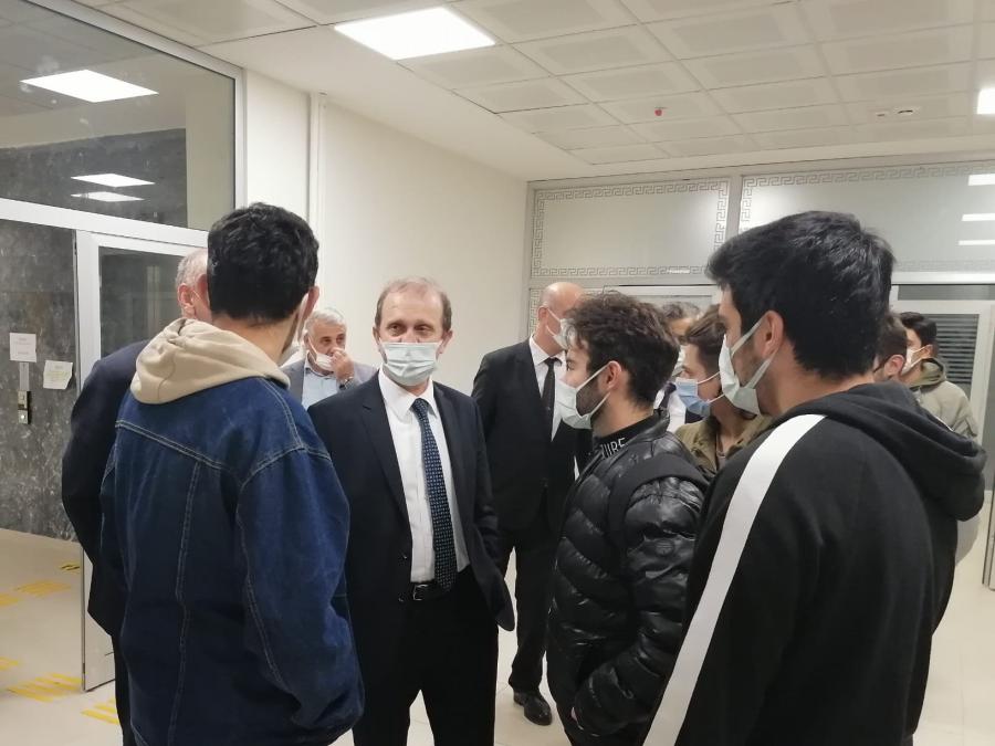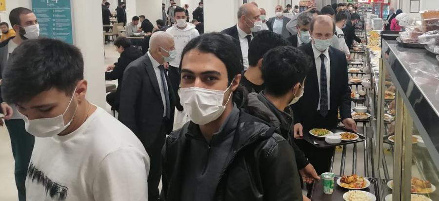 Öğrencilerimizin eğitim-öğretim gördüğü mekânların dışında yaşadıkları ve temel ihtiyaçlarını karşıladıkları ortamları ziyaret etmek isteyen Rektörümüz, onların sosyal ve sportif aktivitelerini gerçekleştirdiği mekânları gezdi ve isteklerini dinledi. Öğrencilerimiz, devletin kendilerine sağladığı beslenme ve barınma imkânlarını yerinde gözlemleyen Rektörümüze, hizmetlerden ve ziyaretten duyduğu memnuniyeti dile getirdi.