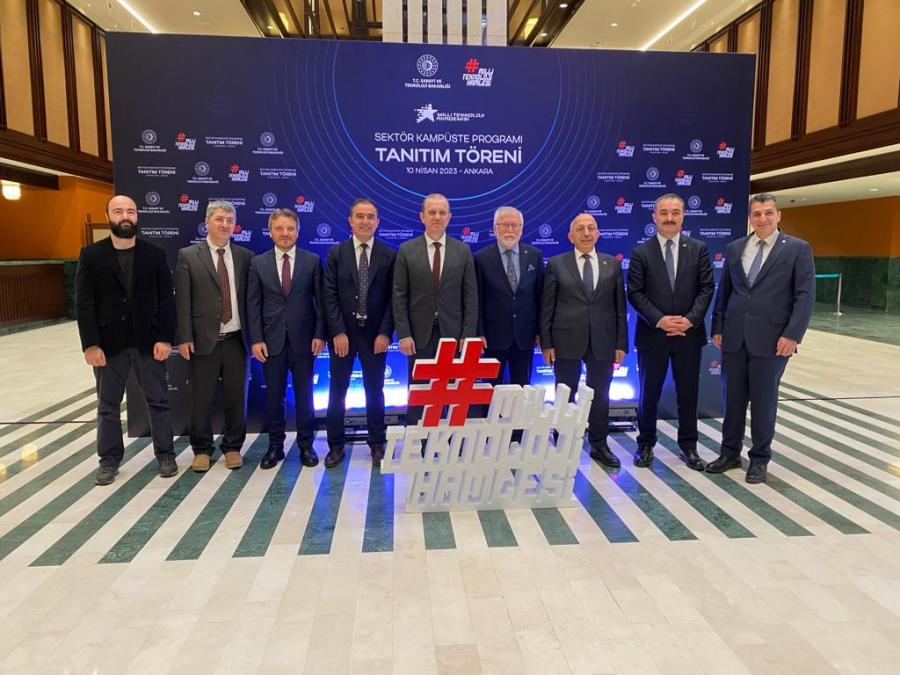 Türkiye’nin son çeyrek asırda gösterdiği milli atılım ile teknolojisinin her alanında küresel ölçekte söz söyleme iddiasını taçlandıracak olan Sektör Kampüste Programı Paydaşlık Protokolü İmza Töreni’ne; Karadeniz Teknik Üniversitesi-TUSAŞ, Ankara Üniversitesi- Aselsan, Erciyes Üniversitesi-Aspilsan, İstanbul Teknik Üniversitesi-Arçelik, Bolu Üniversitesi-Barikat, Sabancı Üniversitesi-Baykar, Çukurova Üniversitesi-Cezeri, Koç Üniversitesi-Kariyer.net, Gazi Üniversitesi-Obss, Dicle Üniversitesi-Profelis, Bilkent Üniversitesi-SAS, Orta Doğu Teknik Üniversitesi-STM, 9 Eylül Üniversitesi-Turkcell, 19 Mayıs Üniversitesi-Tübitak, Atatürk Üniversitesi-Türksat, Gebze Teknik Üniversitesi-TSE, Pamukkale Üniversitesi-Türk Patent, Sakarya Üniversitesi-Ulak Haberleşme, Hitit Üniversitesi- Yongatek, Kocaeli Üniversitesi- Ziraat Teknoloji eşleşmelerini temsilen katılan üniversite ve özel sektör yetkilileri; “Milli Teknoloji Hamlesi”ni gerçekleştirecek nitelikli genç insan kaynağının yetiştirilmesi hedefi doğrultusunda, teknoloji ekosistemindeki güncel bilgi ve deneyimin üniversite öğrencilerine kazandırılması amacıyla T.C. Sanayi ve Teknoloji Bakanlığı tarafından hayata geçirilen Sektör Kampüste Programı kapsamında iş birliğini taahhüt etti.