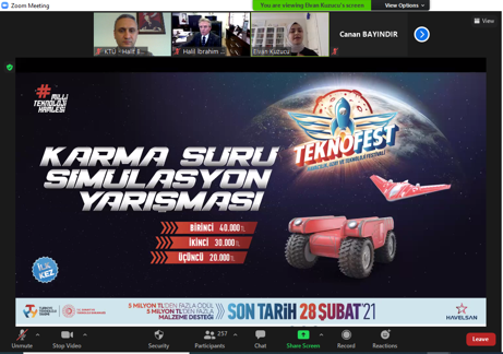 Moderatörlüğünü Rektör Yardımcımız Sayın Prof. Dr. Halil İbrahim Okumuş’un yaptığı toplantıya TEKNOFEST İcra Kurulu Üyesi Elvan Kuzucu Hıdır, TEKNOFEST Yarışmalar Koordinatörü Engin Öksüz ve TEKNOFEST Yarışmalar Sorumlusu Gizem Karabacak konuk oldular.