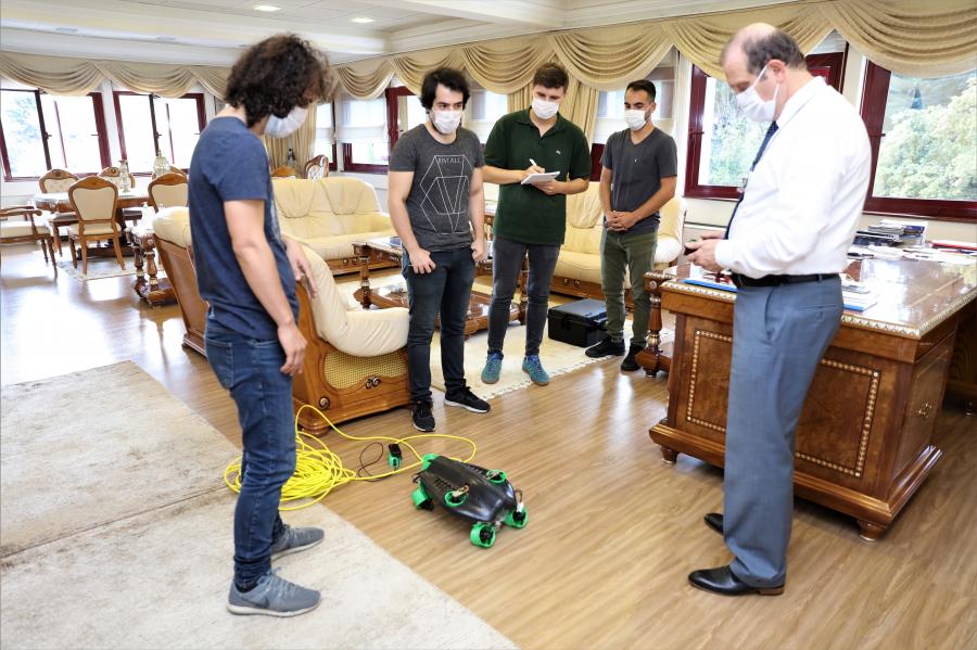TEKNOFEST (Havacılık, Uzay ve Teknoloji Festivali) yarışmasında iki yıldır birincilik ödülüyle geri dönen KTÜ Creatiny ekibi Rektörümüz Prof. Dr. Hamdullah ÇUVALCI’yı ziyaret etti. Yeni tasarlanan kablosuz insansız sualtı aracını Rektörümüze tanıtan ekip, bu yıl 24 Eylül 2020’de Gaziantep’te düzenlenecek olan TEKNOFEST yarışmasında da iddialı olduklarını dile getirdi.