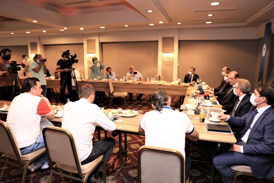 Rektörümüz Prof. Dr. Hamdullah ÇUVALCI, Rektör Yardımcısı Prof. Dr. Halil İbrahim OKUMUŞ, Rektör Yardımcısı Prof. Dr. Akif CİNEL, Rektör Yardımcısı Prof. Dr. Cemil RAKICI, Farabi Hastanesi Başhekimi Prof. Dr. Celal TEKİNBAŞ, Genel Sekreter Vekili Prof. Dr. Bünyamin ER ve Genel Sekreter Yardımcısı Fazlı ÖZTEL Zorlu Grand Hotel’de 14.09.2020 Pazartesi günü saat 10.00’da düzenlenen basın toplantısında basın mensupları ile bir araya geldiler.