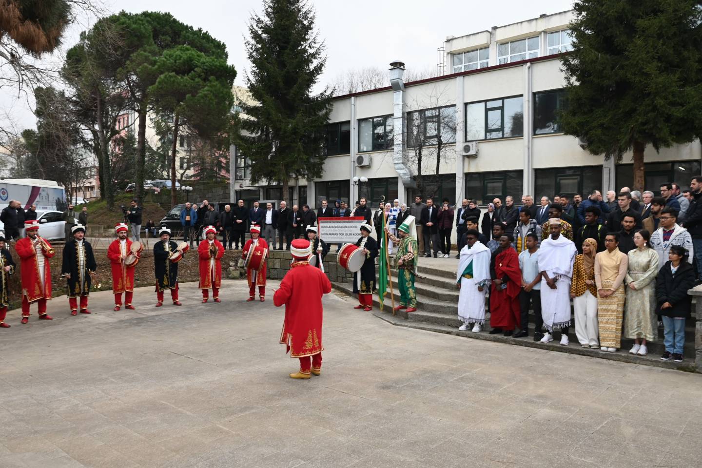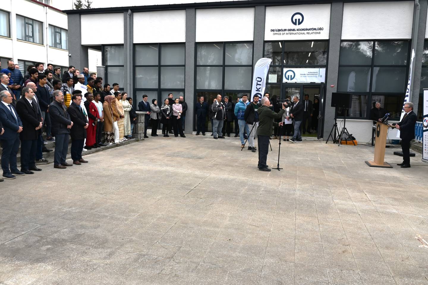 Uluslararası öğrencilerimiz ile Türk öğrencilerin kaynaşabileceği, kendi coğrafyalarını, kültürlerini ve geleneklerini birbirlerine aktarabileceği, ortak akademik ve sosyal projeler üretebileceği, birlikte çalışabileceği ve keyifli zaman geçirebileceği alanlar oluşturmayı hedefleyen Dış İlişkiler Koordinatörlüğü hizmet birimleri yeni binasının açılış töreninde, Üniversitemiz Eczacılık Fakültesi öğrencilerinden Kuot Emmanuel MADHUK, günün anlam ve önemine binaen gerçekleştirdiği konuşmada “Başka bir ülkeye gidip dil öğrenmek cesaret ister. Nimete erişmek için bazen külfetine katlanmak zorundayız arkadaşlar. Ama bu noktada KTÜ’de olmak bambaşka bir şey. Gerek ulaşım imkânları gerekse de personelin ilgi ve alakası çok iyi. Buraya geldiğinizde de Türkçe’yi öğrenmeniz lazım. Çok önemli ve biliyorum çok zor bir şey. Gerçekten deneyimledim. Uluslararası öğrenci olarak eğitimimiz dışında bizim Türkçe’yi çok iyi bilmemiz lazım. Burada ortam çok sağlam. Kollarımızı sıvayıp çok çalışmamız lazım. Burada misafir olmak çok güzel bir şey. Eğitimimiz dışında Trabzon’da olmak, burada anlamlı ilişkiler kurmak, çok güzel bir duygu…” dedi. Ardından açılış konuşmasını yapan Rektör Yardımcımız Prof. Dr. Halil İbrahim OKUMUŞ, “Açılışını yaptığımız bu hizmet binasında; Değişim Programları Koordinatörlüğü, Uluslararasılaşma Koordinatörlüğü ve Uluslararası Öğrenci İşleri Koordinatörlüğü bünyesinde gerçekleştirilecek hizmetleri vereceğiz. Bu hizmetleri verebilmek için bir mekâna ihtiyacımız vardı. Daha önce personel yemekhanesi olarak kullanılan bu mekânı restore ederek Dış İlişkiler Genel Koordinatörlüğü ek hizmet binası haline getirdik ve misafir öğrencilerimize kazandırmış olduk. Şunun altını çizmek istiyorum: Biz, misafir öğrencilerimizi burada izole etmek istemiyor, aksine diğer öğrencilerimiz ile kaynaştırmak istiyoruz. Eğitim ve sosyo-kültürel faaliyetleri noktasında diğer öğrencilerimiz ile birlikte burayı kullanacaklar. Süreçte emeği geçen Rektörümüze, Rektör Danışmanımız Prof. Dr. Serbülent VURAL’a ve tüm personelimize teşekkür ediyorum.” sözlerine yer verdi.
