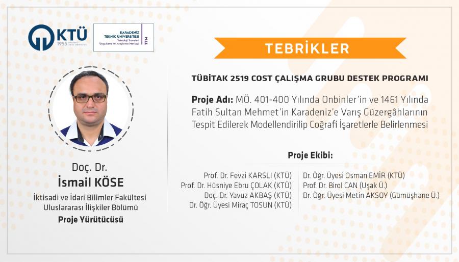 Doç. Dr. İsmail KÖSE (Yürütücü)- KTÜ