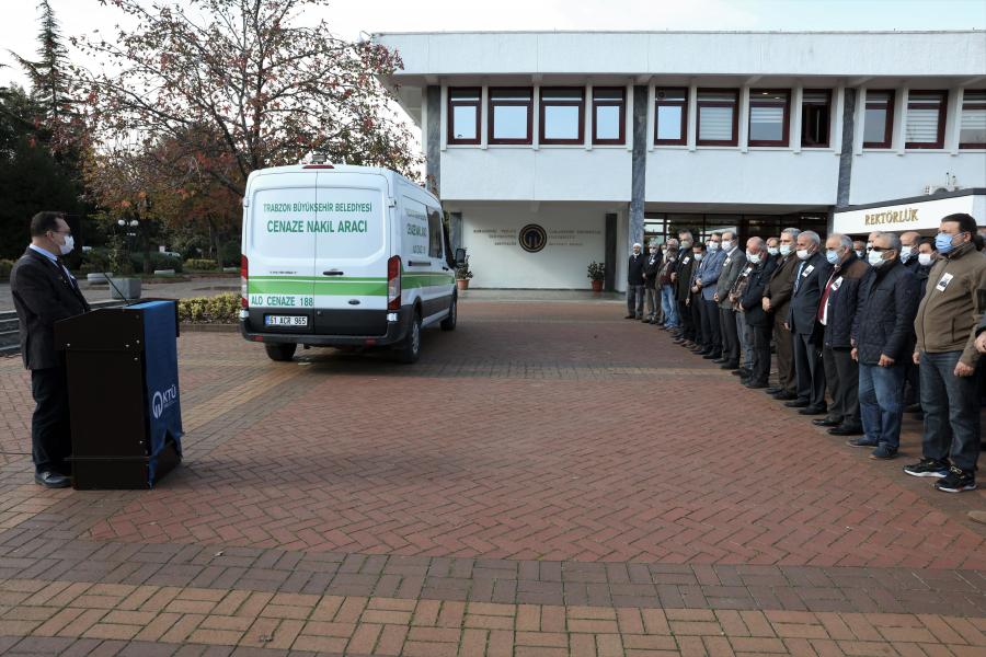 Üniversitemiz camiasında sevilen bir eğitimci olan akademisyenimiz için Rektörlük binası önünde gerçekleştirilen cenaze töreninde, Sürmene Deniz Bilimleri Fakültesi Dekanı Prof. Dr. Ali Muzaffer FEYZİOĞLU yaptığı konuşmada, “Kıymetli çalışma arkadaşımıza Allah’tan rahmet; kederli ailesine, öğrencilerine başsağlığı diliyorum.” dedi.