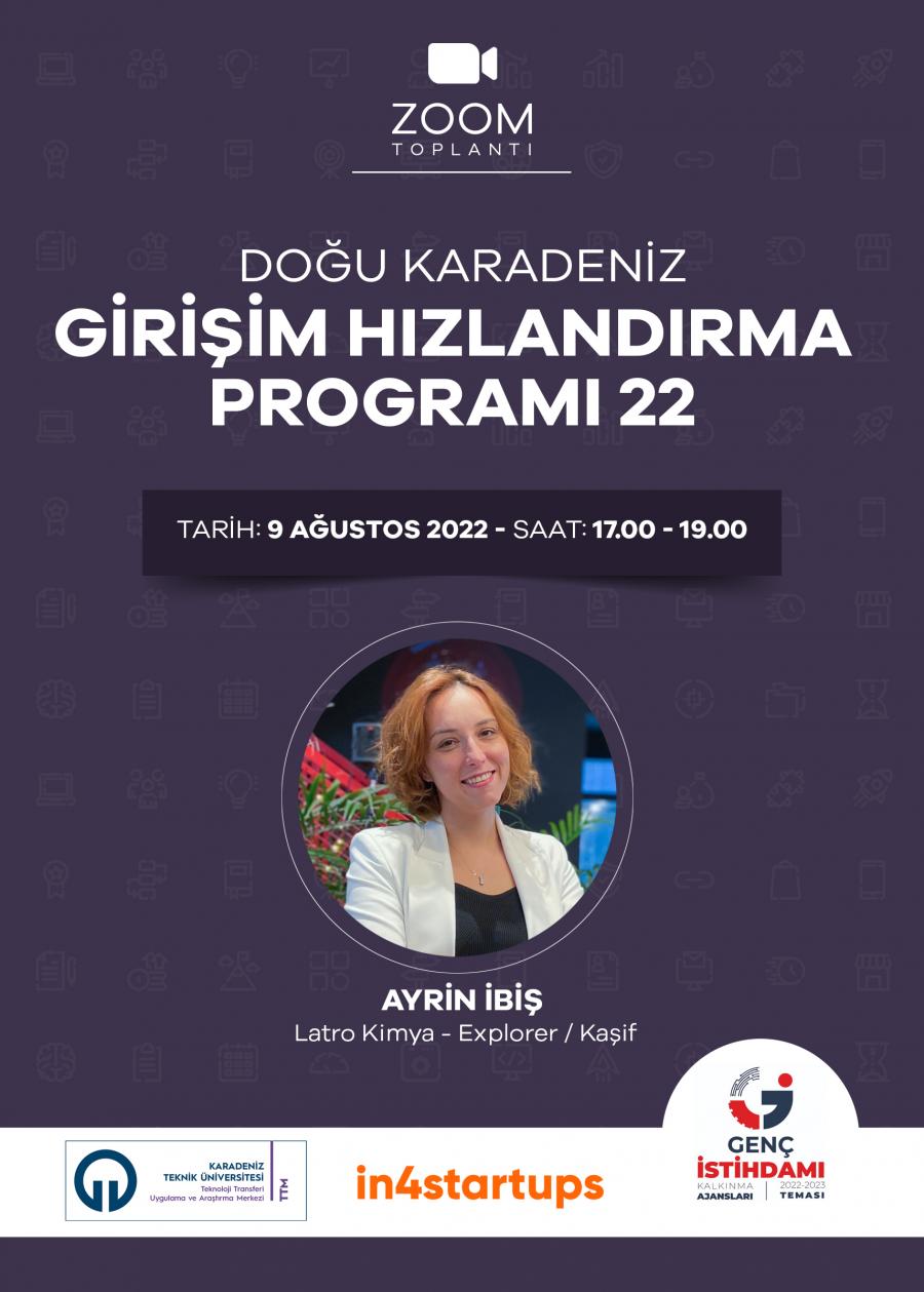 Doğu Karadeniz Girişim Hızlandırma Programı Kapsamında Latro Kimya'dan AYRIN IBIS "Kadın, Girişimcilik ve Kolektif Yaklaşımlar" semineri ile bizlerle. KTÜ TTM tarafından yürütülen ve in4startup tarafından organize edilen hızlandırıcı programında gerçekleştirilecek olan seminerlere katılım için takipte kalın.