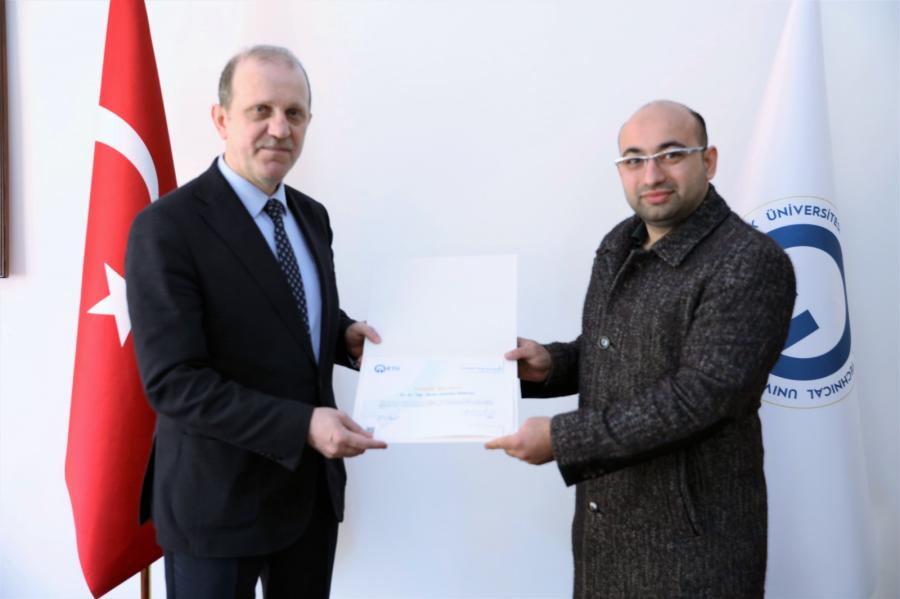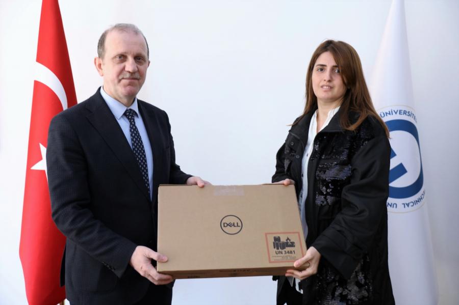 Rektör Yardımcılarımız; Prof. Dr. Akif CİNEL, Prof. Dr. Halil İbrahim OKUMUŞ ve Prof. Dr. Cemil RAKICI’nın da iştirak ettiği törende, Rektörümüz Prof. Dr. Hamdullah ÇUVALCI, proje yürütücülerine dizüstü bilgisayar, proje personeline ise Tebrik Belgesi takdim ederek başarılı çalışmalarının devamını diledi.