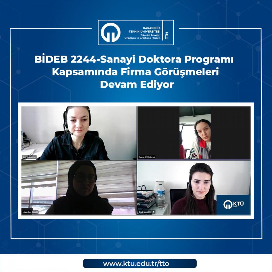 Sanayide ihtiyaç duyulan doktora derecesine sahip nitelikli insan kaynağının üniversite-sanayi iş birliği ile yetiştirilmesi, sanayide doktoralı araştırmacı istihdamının teşvik edilmesi ve üniversite/araştırma altyapısı-sanayi iş birliğinin geliştirilmesinin amaçlandığı 2244-Sanayi Doktora Programı kapsamında; Mc Filtre San. Ve Tic. Ltd. Şti. firması ile çevrim içi toplantı gerçekleştirilmiştir. KTÜ TTM tarafından firmaya yapılan 2244-Sanayi Doktora Programı bilgilendirmelerinin yanı sıra olası çalışmalar üzerine görüşme sağlanmıştır.