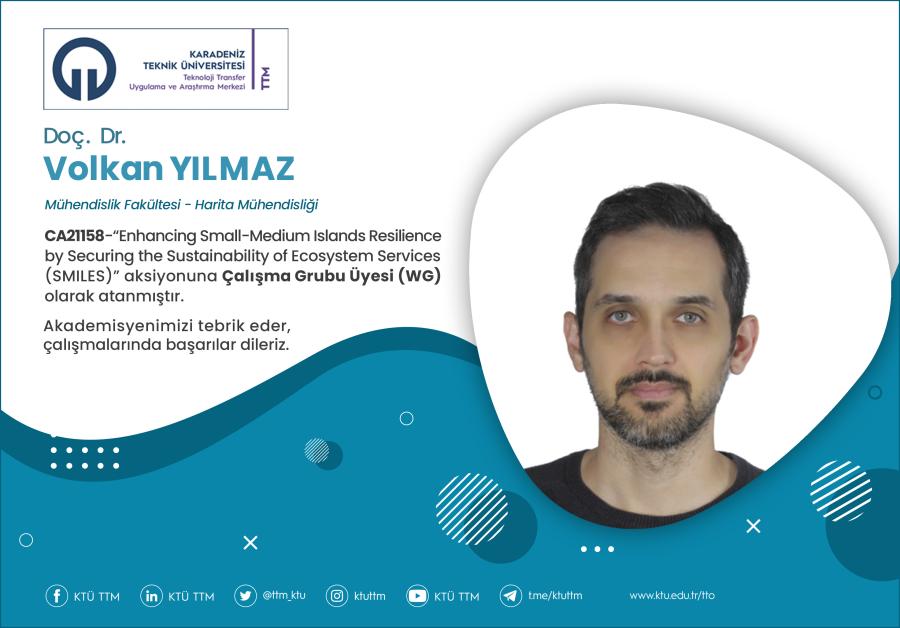 Üniversitemiz Mühendislik Fakültesi Harita Mühendisliği Bölümü öğretim üyesi Doç. Dr. Volkan YILMAZ, COST Programı’nın “CA21158 - Enhancing Small-Medium Islands Resilience by Securing the Sustainability of Ecosystem Services (SMILES)” aksiyonuna Çalışma Grubu Üyesi (WG) olarak atanmıştır.