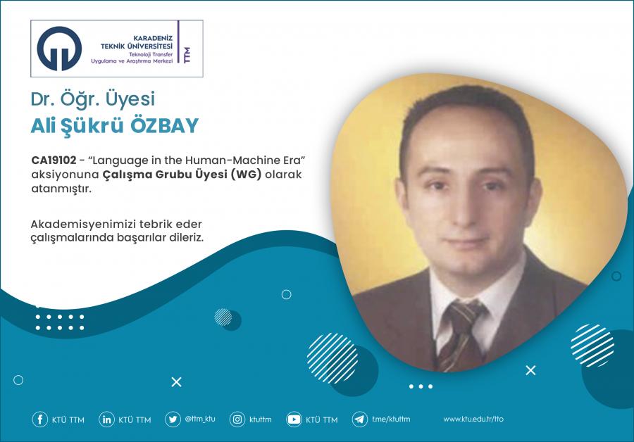 Üniversitemiz Edebiyat Fakültesi Batı Dilleri ve Edebiyatı Bölümü öğretim üyesi Dr. Öğr. Üyesi Ali Şükrü ÖZBAY, COST Programı’nın “CA19102 - Language in the Human-Machine Era’’ aksiyonuna Çalışma Grubu Üyesi (WG) olarak atanmıştır.