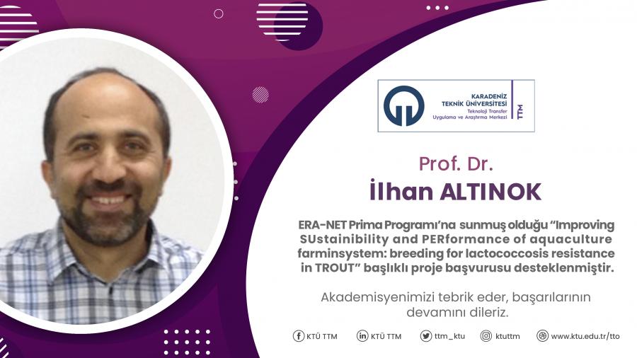 Üniversitemiz Sürmene Deniz Bilimleri Fakültesi Balıkçılık Teknolojisi Müh. Bölümü öğretim üyelerimizden Prof. Dr. İlhan ALTINOK’un üniversitemizi temsil ettiği ve KTÜ'nün ortak olarak yer aldığı; uluslararası fon destekli ERA-NET Prima Programına sunulan “Improving SUstainibility and PERformance of aquaculture farming system: breeding for lactococcosis resistance in TROUT” başlıklı proje başvurusu desteklenmeye hak kazanmıştır.