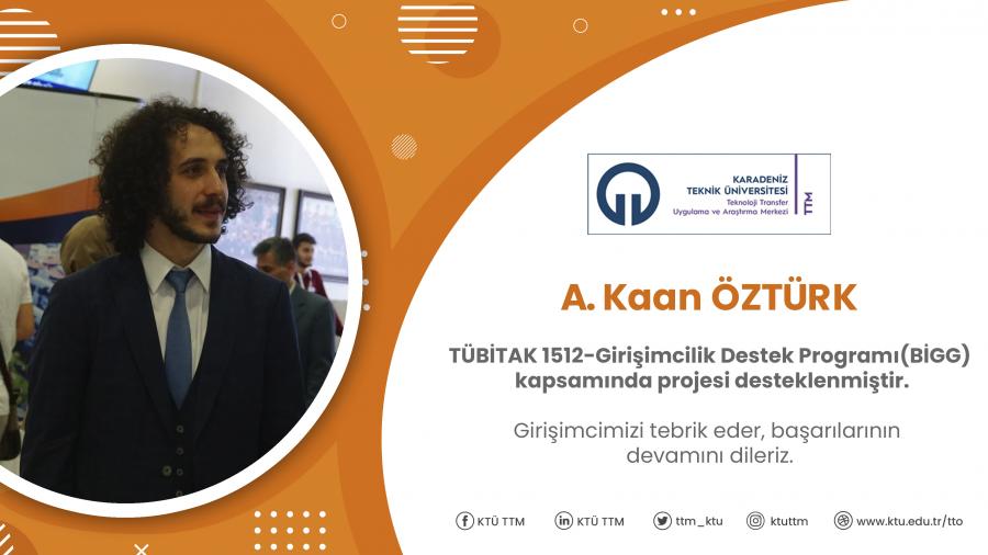 A. Kaan ÖZTÜRK'ün TÜBİTAK 1512 Girişimcilik Destek Programı projesi desteklenmiştir.
