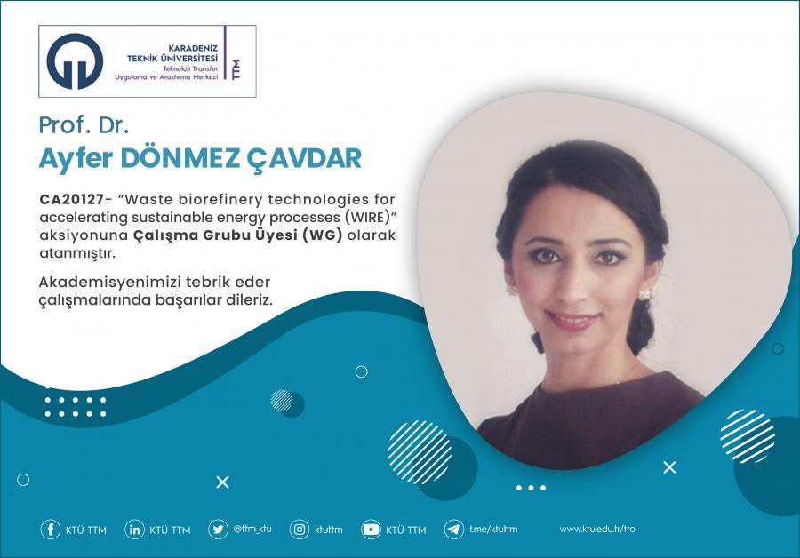 Üniversitemiz Orman Fakültesi Orman Endüstri Mühendisliği Bölümü öğretim üyesi Prof. Dr. Ayfer DÖNMEZ ÇAVDAR, COST Programı’nın “CA20127 - Waste biorefinery technologies for accelerating sustainable energy processes (WIRE) aksiyona Çalışma Grubu Üyesi (WG) olarak atanmıştır.
