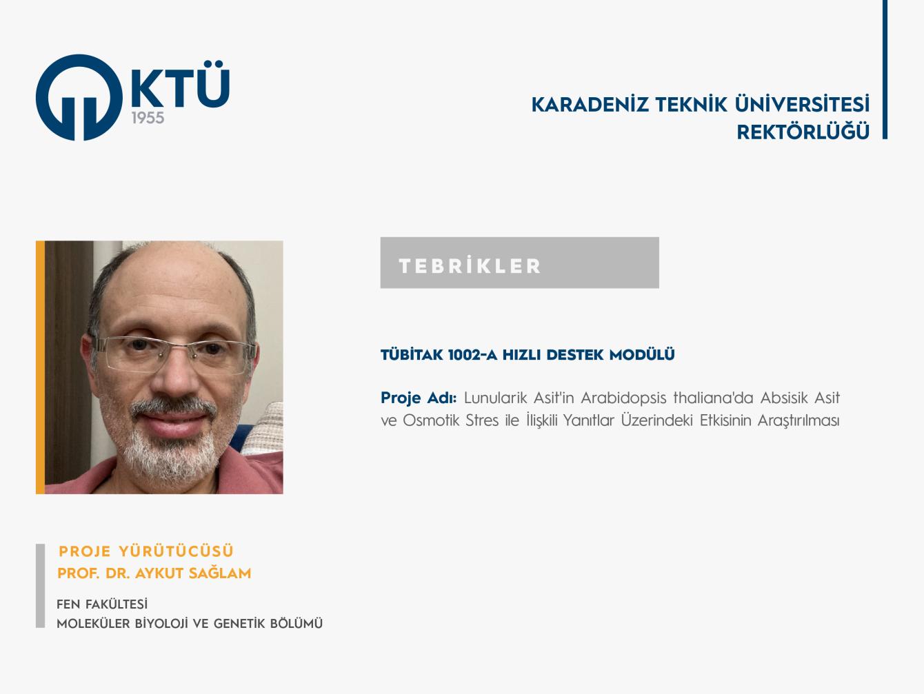 Prof. Dr. Aykut SAĞLAM'a TÜBİTAK 1002 Proje Desteği