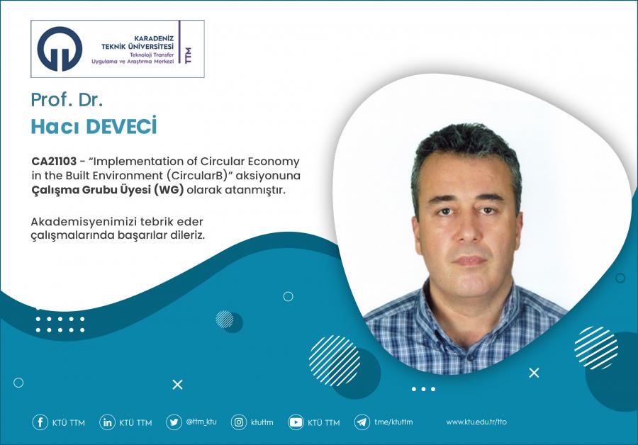 Üniversitemiz Mühendislik Fakültesi Maden Mühendisliği Bölümü öğretim üyesi Prof. Dr. Hacı DEVECİ, COST Programı’nın “CA21103 - Implementation of Circular Economy in the Built Environment (CircularB)” aksiyonuna Çalışma Grubu Üyesi (WG) olarak atanmıştır.