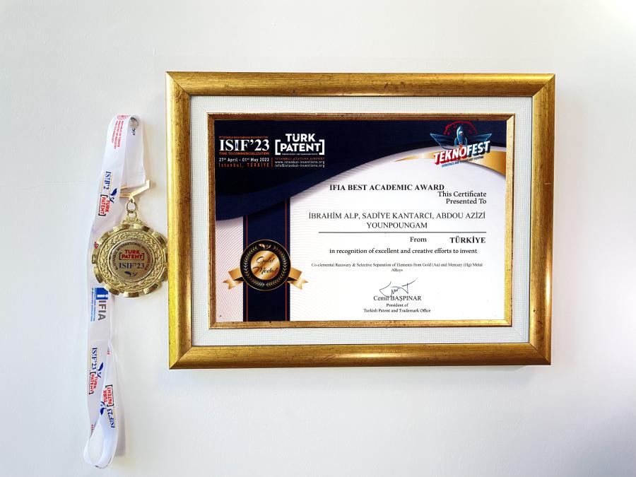 Dünya genelindeki buluşçulara destek olmak için çalışan Uluslararası Buluşçuluk Federasyonu (IFIA) tarafından verilen ve fuarın en iyi 12 buluşundan biri olan "En İyi Akademik Buluş Ödülü"nü de Üniversitemiz kazandı. Üniversitemiz akademisyenlerinden Prof. Dr. İbrahim ALP ve diğer buluşçular, Abdou Azizi YOUNPOUNGAM ve Sadiye KATRANCI’nın, “Co-elemental Recovery & Selective Separation of Elements from Gold (Au) And Mercury (Hg) Metal” adlı patenti, "En İyi Akademik Buluş Ödülü"nü aldı.