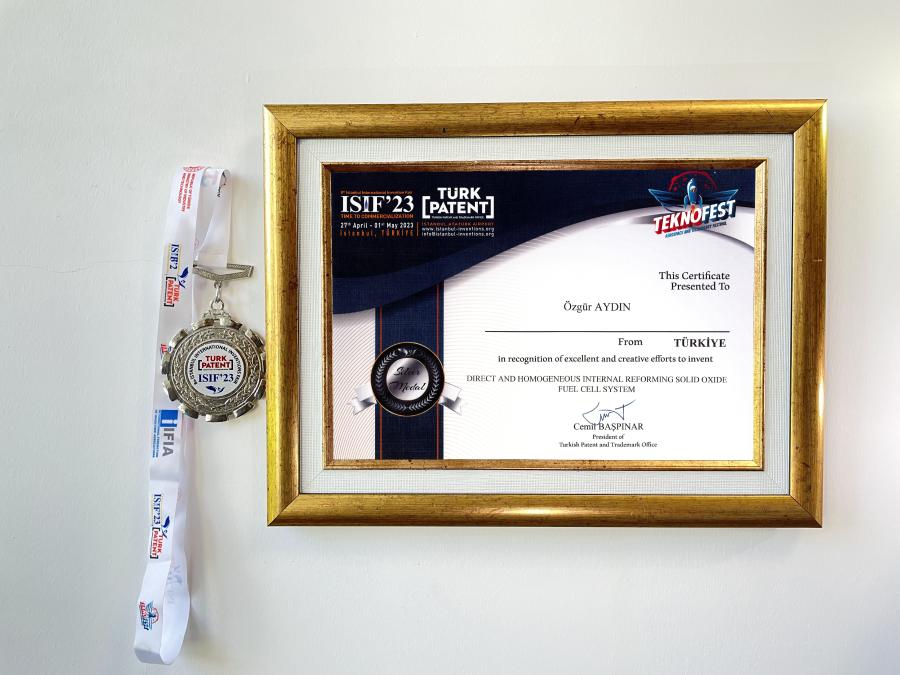 “Direct and Homogeneous Internal Reforming Solid Oxide Fuel Cell System (Direkt ve Homojen İç Reformlu Katı Oksit Yakıt Pili Sistemi)” adlı patenti ile Dr. Öğr. Üyesi Özgür AYDIN.