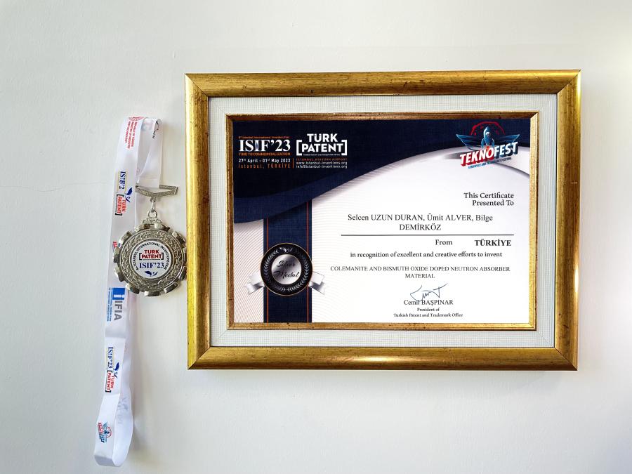 “Colemanite and Bismuth Oxide Doped Neutron Absorber Material (Kolemanit ve Bizmut Oksit Katkılı Nötron Emici Malzeme)” adlı patenti ile Dr. Öğr. Üyesi Selcen UZUN DURAN, Prof. Dr. Ümit ALVER, Prof. Dr. Bilge DEMİRKÖZ,