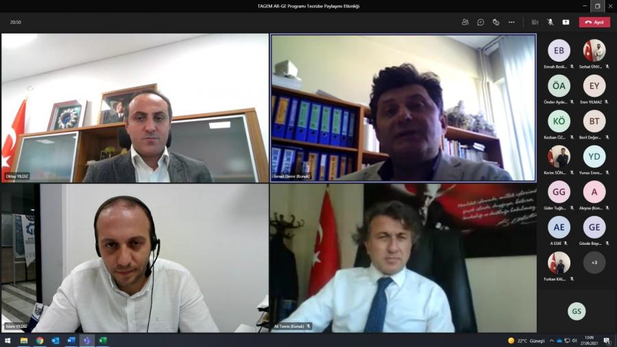 Tecrübe Paylaşım Serisi’nin dördüncüsü “TAGEM AR-GE Programı Tecrübe Paylaşımı Etkinliği” 27 Eylül Pazartesi Günü Saat: 13.00’de konuşmacı olarak Üniversitemiz akademisyenlerinden; Prof. Dr. Oktay YILDIZ ve Prof. Dr. İsmail DEMİR’in katılımıyla çevrimiçi olarak düzenlenmiştir.