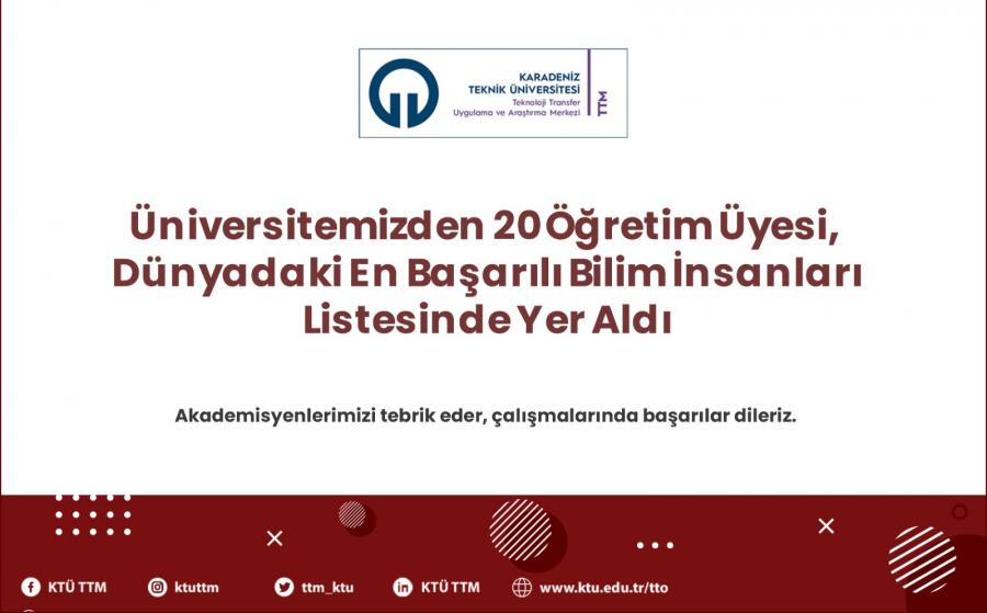 Türkiye'den, 2019 yılı verilerine göre 857 bilim insanının yer aldığı listede, Üniversitemizden de 20 bilim insanı bulunuyor.