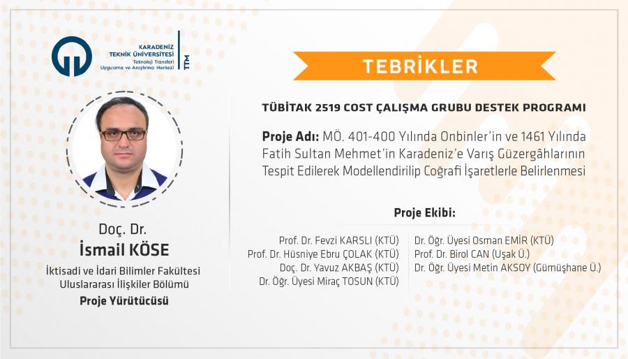 Doç. Dr. İsmail KÖSE (Yürütücü)- KTÜ