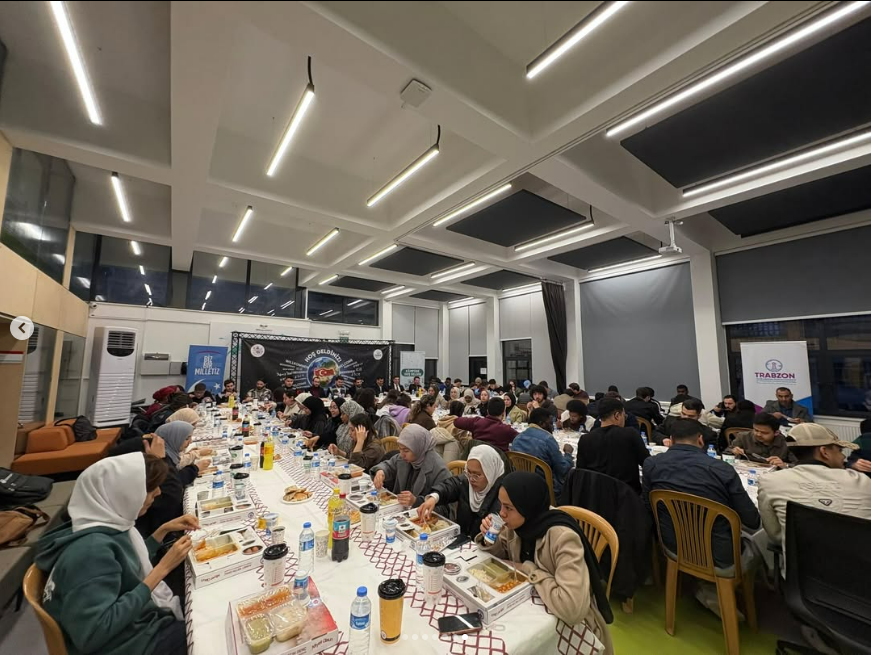 KTÜ Araştırma ve Kariyer Kulübü tarafından uluslararası öğrencilere yönelik iftar programı düzenlendi. Dış İlişkiler Ofisi etkinlik salonunda gerçekleştirilen program, Ramazan ayının manevi atmosferinde farklı kültürlerden öğrencileri bir araya getirdi. Yoğun katılımın olduğu etkinlikte öğrenciler birlikte iftar yapma fırsatı bulurken, farklı ülkelerden gelen katılımcılar kendi kültürlerine ait Ramazan geleneklerini paylaşarak kültürel etkileşimi artırdı. Samimi bir ortamda gerçekleşen program, öğrenciler arasında dayanışma ve kaynaşmayı güçlendirdi. Program kapsamında çeşitli sohbetler ve etkileşimli etkinlikler düzenlenirken, öğrencilerin birbirlerini daha yakından tanımasına olanak sağlandı. Etkinlik, toplu hatıra fotoğrafı çekimiyle sona erdi.