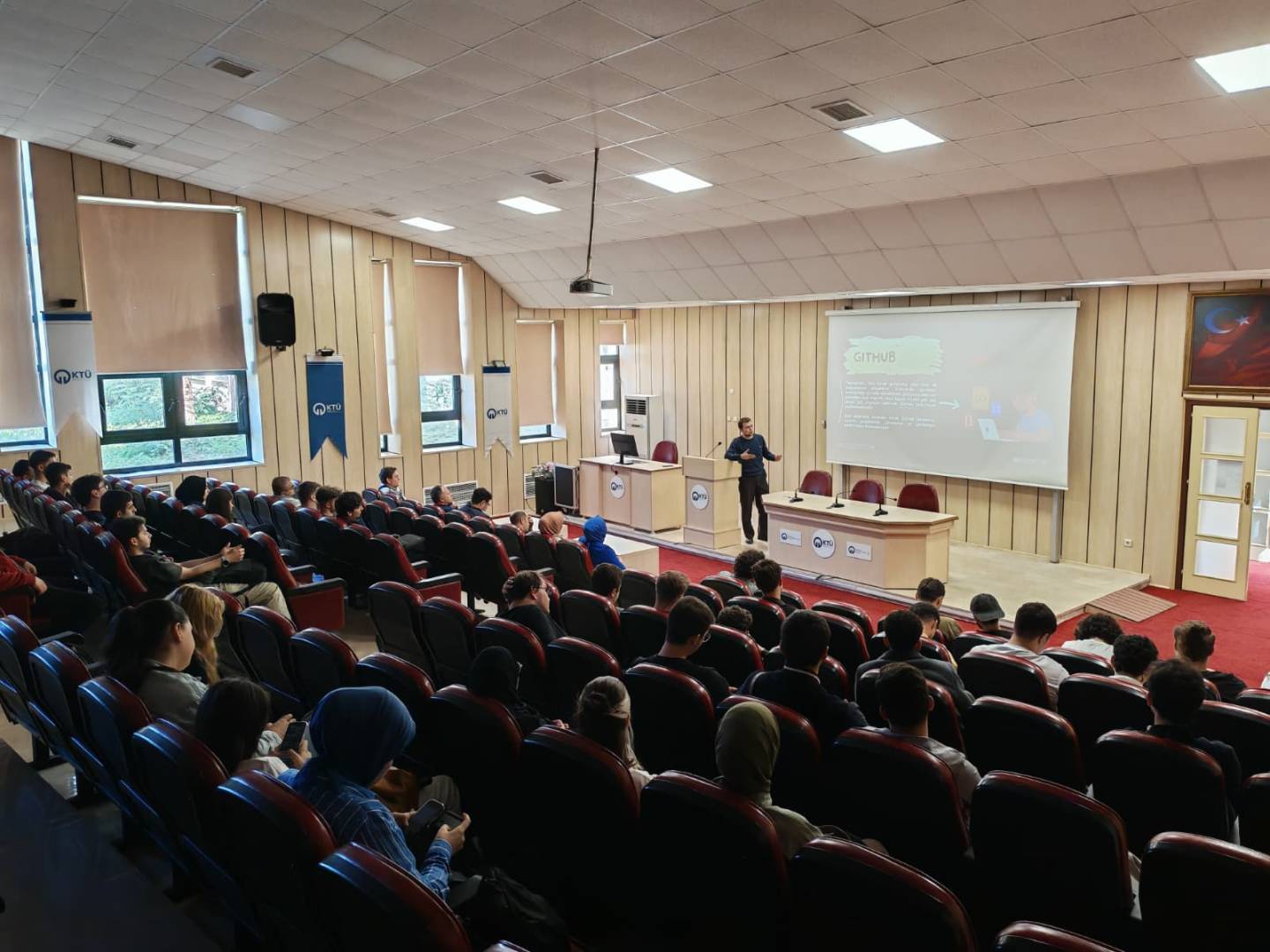 Etkinlik kapsamında, İsmail Alp AYDEMİR ve Ahmet Emre ALADAĞ yapay zekâ alanındaki bilgi ve deneyimlerini öğrencilerimizle paylaştı.