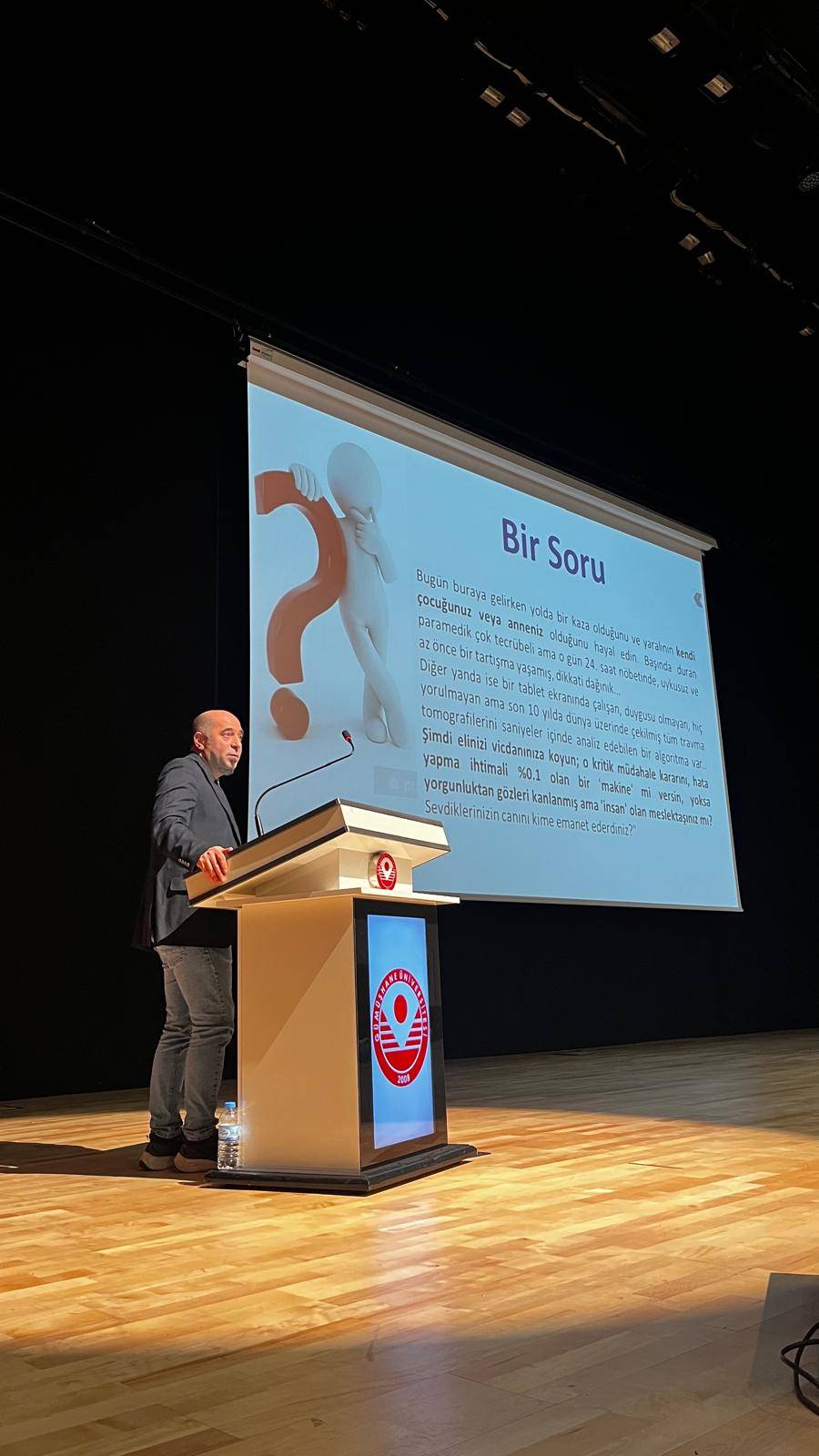 Sağlık teknolojilerinin hızla geliştiği günümüzde, acil müdahale süreçlerinin geleceğine ışık tutan hocamız, "Hastane Öncesi ve Acil Serviste Yapay Zeka Uygulamaları, Günümüz ve Gelecekte Bizi Neler Bekliyor" başlıklı sunumuyla dinleyicilerle buluşmuştur. Sunumda; yapay zeka algoritmalarının hastane öncesi triyaj süreçlerindeki yeri, karar destek mekanizmaları ve acil servis yönetiminde gelecekte karşılaşılması muhtemel senaryolar detaylı bir şekilde ele alınmıştır.